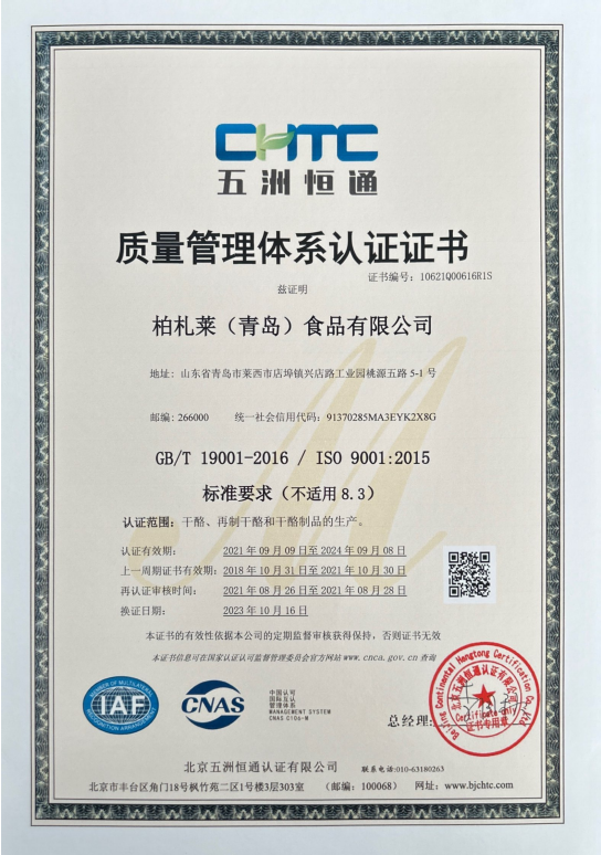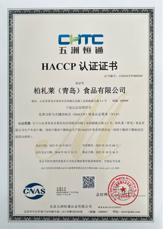 通过了ISO/9001、HACCP和GMP认证